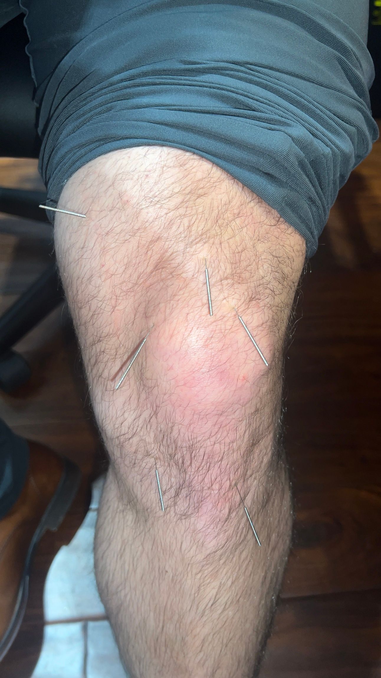 You will still needle trigger points in their respective muscles. I had this gnarly trigger point right there on the VMO (top left of the picture) so I decided to needle it. What a relief!!